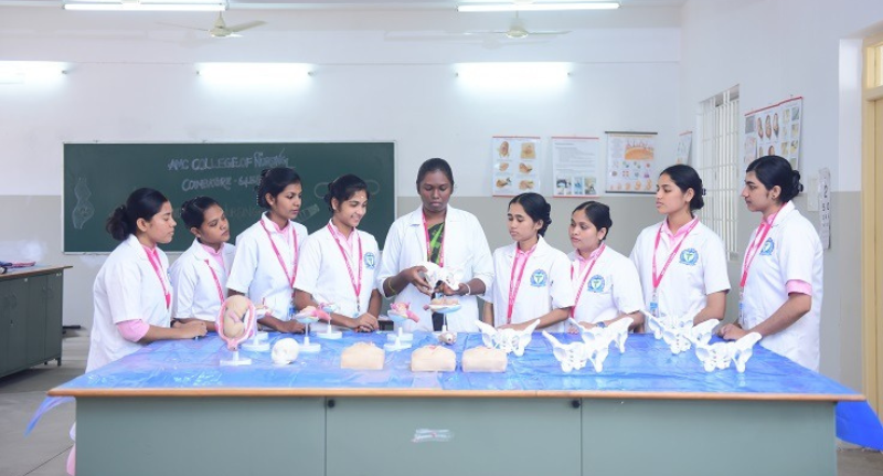 The AMC College of Nursing has well ventilated, Lighted and laid out classrooms with comfortable seating arrangements. Each classroom is equipped with Interactive Smart panel, black board,Pordium, LCD, for the improvised class room learning.